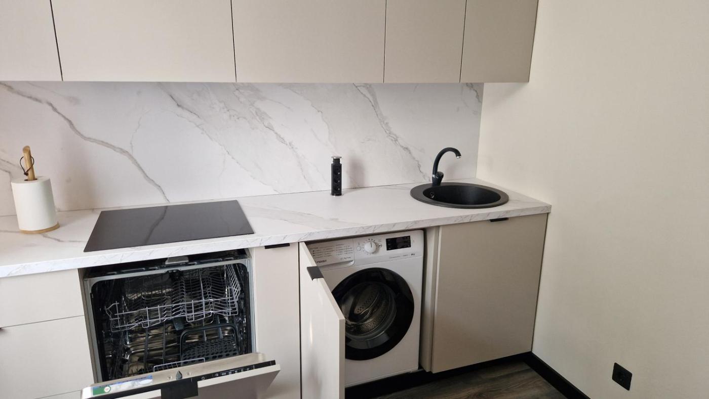 One-Bedroom Apartment. The well-equipped kitchen features a stovetop, a refrigerator, a dishwasher and kitchenware. The apartment offers a washing machine, a dining area, a wardrobe, a flat-screen TV with cable channels, as well as a quiet street view. The unit offers 1 bed.