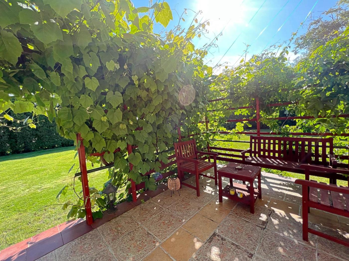 Two-Bedroom House. Boasting a private entrance, this holiday home comes with 1 living room, 2 separate bedrooms and 1 bathroom with a shower and a hairdryer. Guests will find a stovetop, a refrigerator, kitchenware and an oven in the well-fitted kitchen. The holiday home also includes a barbecue. Featuring a terrace with garden views, this holiday home also features a washing machine and a flat-screen TV with streaming services. The unit has 4 beds. ;