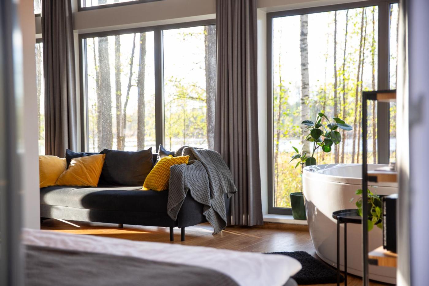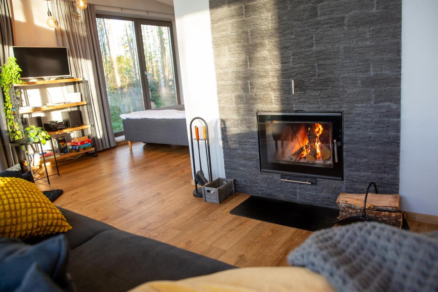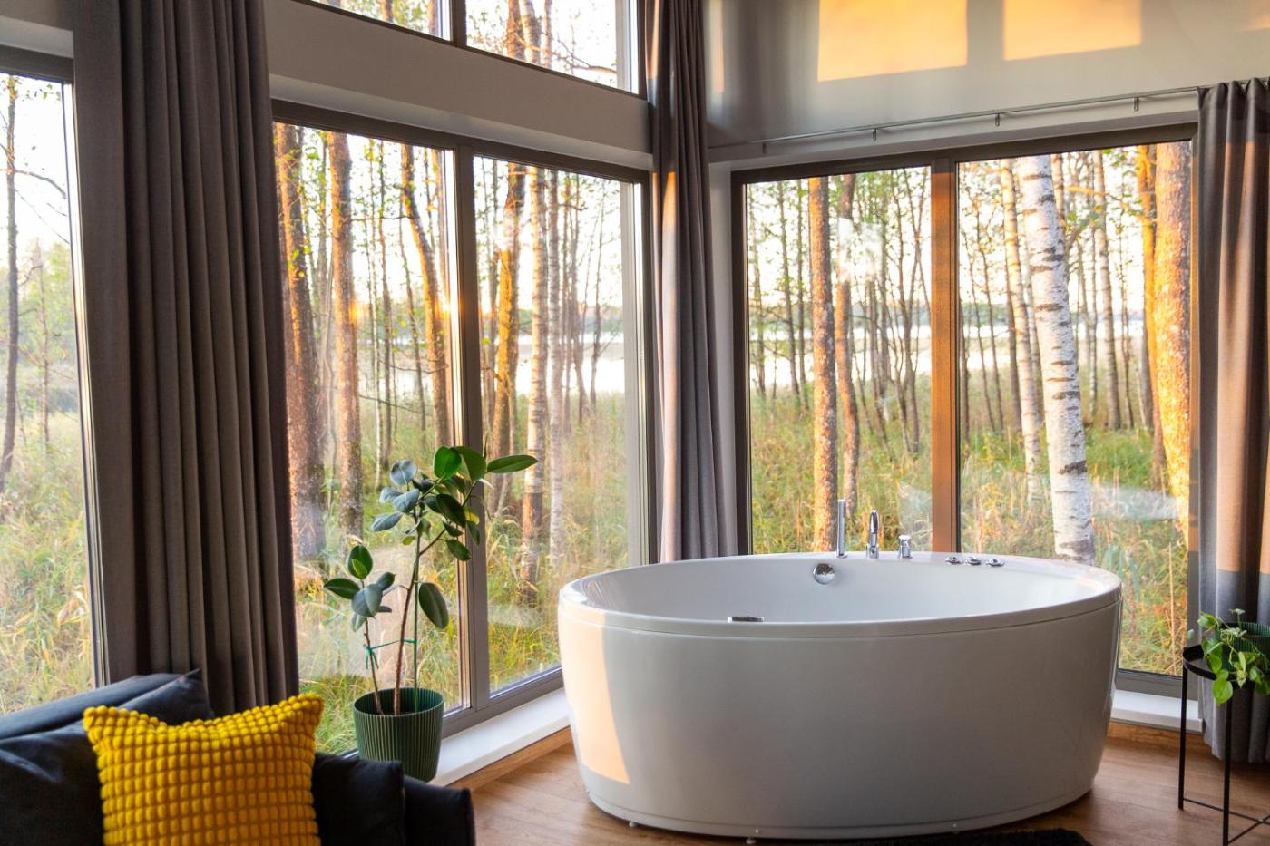 One-Bedroom House. This luxurious holiday home provides a hot tub, a sauna and a fireplace. Boasting a private entrance, this air-conditioned holiday home comes with a kitchen, 1 bedroom and 1 bathroom with a walk-in shower and a bath. Guests will find a stovetop, a refrigerator, kitchenware and a tea and coffee maker in the fully equipped kitchen. The holiday home also includes a barbecue. Featuring a terrace with lake views, this holiday home also features a washing machine and a flat-screen TV with streaming services. The unit has 1 bed.