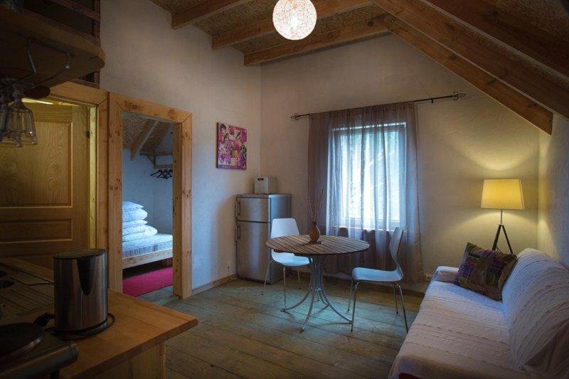 Family Apartment (5 Adults). Guests will have a special experience as this apartment offers a sauna and a fireplace. Featuring a private entrance, this apartment also comprises 1 living room, 1 separate bedroom and 1 bathroom with a shower. Guests will find a stovetop, a refrigerator, kitchenware and a tea and coffee maker in the fully equipped kitchen. The apartment also provides guests with a barbecue. The apartment provides soundproof walls, a seating area, as well as a terrace and a patio. The unit offers 3 beds.