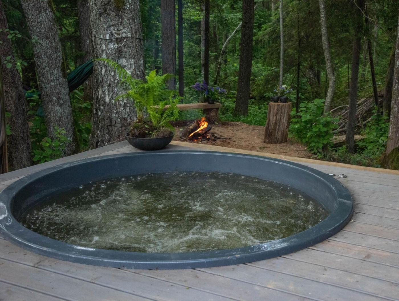 Featuring accommodation with a heated pool, garden view and a patio, CLOUDS AND CLAY Ligatne is located in Ratnieki. This property offers access to a terrace and free private parking. The chalet has an outdoor fireplace and a hot tub.