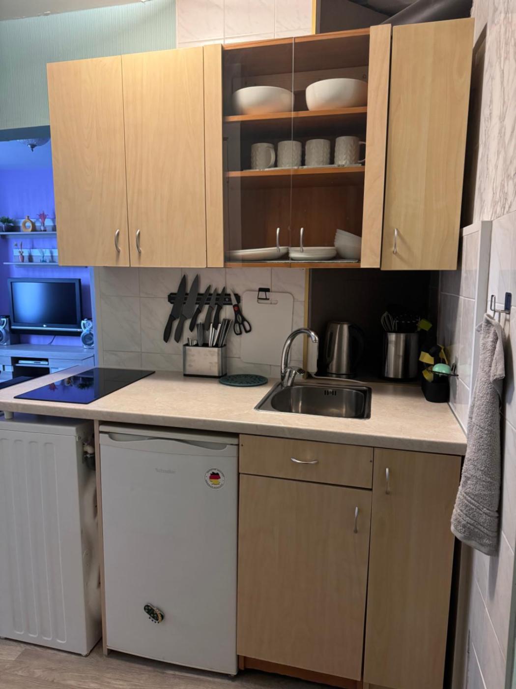 One-Bedroom Apartment. The apartments kitchen is available for cooking and storing food. The unit has 2 beds.