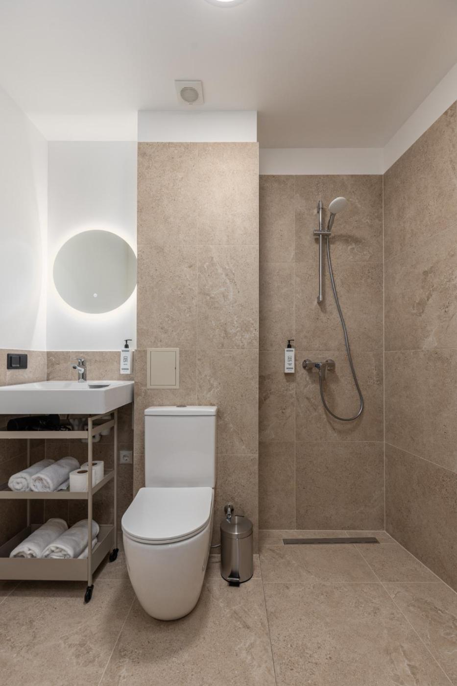 Studio Apartment. The apartment features 1 bedroom and 1 bathroom with a shower and free toiletries. The well-fitted kitchen has a stovetop, a refrigerator, a microwave and an electric kettle. The apartment provides a wardrobe, parquet floors, a tiled floor, heating, as well as a flat-screen TV. The unit offers 1 bed.