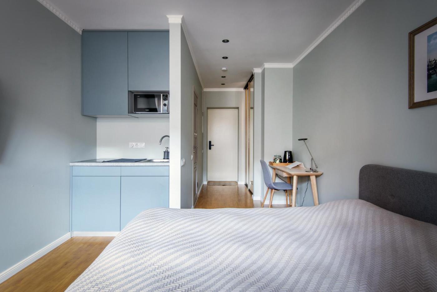 One-Bedroom Apartment. The apartment features 1 bedroom and 1 bathroom with a shower and free toiletries. Meals can be prepared in the kitchen, which is equipped with a stovetop, a refrigerator, kitchenware and a microwave. This apartment has a tea and coffee maker, flat-screen TV with streaming services, city views, as well as chocolate for guests. The unit offers 1 bed.