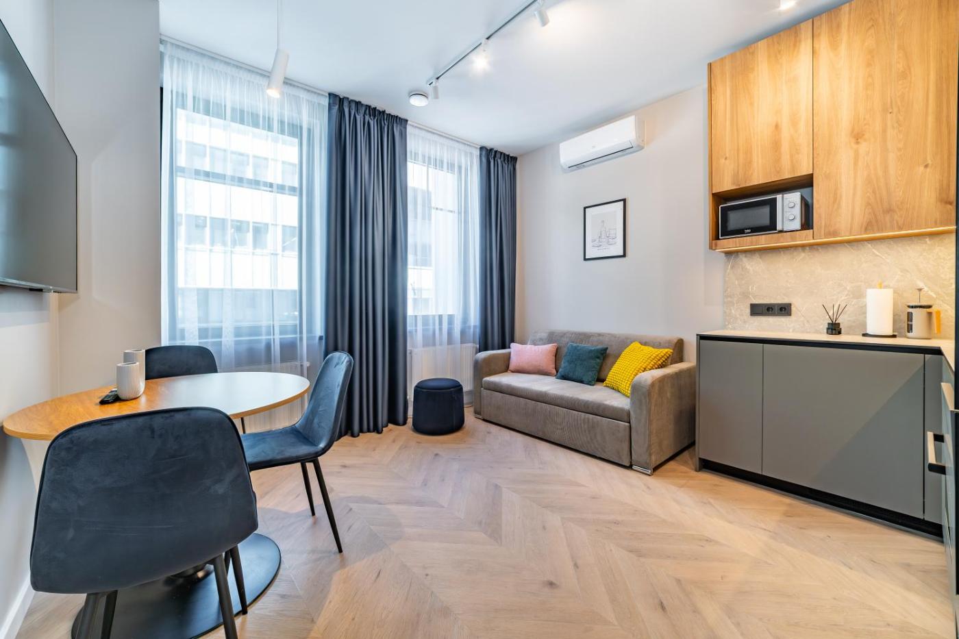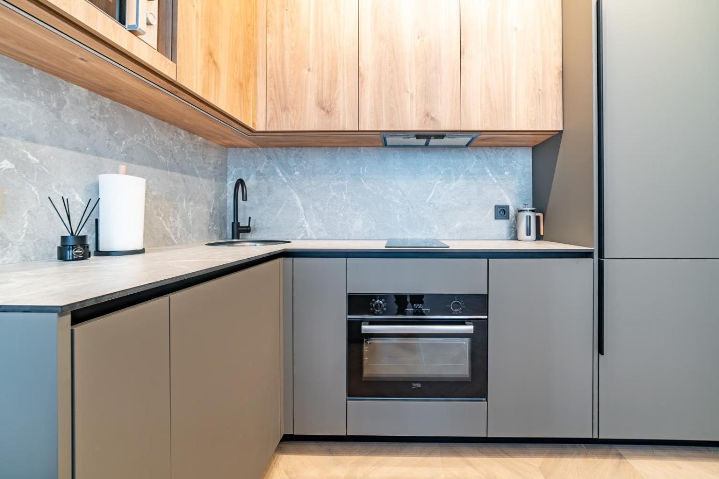One-Bedroom Premium Apartment. This apartment comprises 1 living room, 1 separate bedroom and 1 bathroom with a shower and free toiletries. In the kitchen, guests will find a stovetop, a refrigerator, a dishwasher and kitchenware. The air-conditioned apartment provides a flat-screen TV, a washing machine, a tea and coffee maker, a dining area as well as a quiet street view. The unit offers 2 beds.