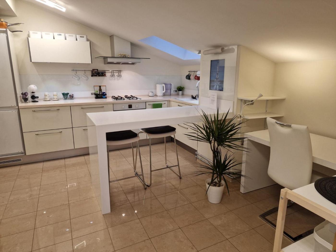 One-Bedroom Apartment. The fully equipped kitchen features a stovetop, a refrigerator, kitchenware and an oven. The spacious air-conditioned apartment provides a flat-screen TV with streaming services, a washing machine, a tea and coffee maker and a seating area. The unit offers 2 beds.