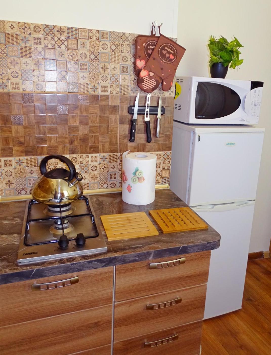 Apartment. This apartment consists of 1 living room, 1 separate bedroom and 1 bathroom with a walk-in shower and free toiletries. Guests can make meals in the kitchen that is equipped with a stovetop, a refrigerator, kitchenware and a microwave. This apartment features a tea and coffee maker, a seating area, flat-screen TV, as well as winechampagne for guests. The unit offers 2 beds.