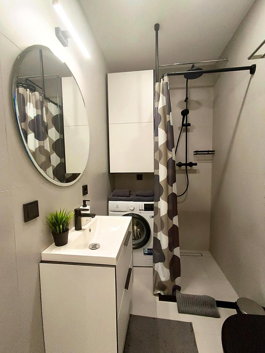 One-Bedroom Apartment. This apartment comes with 1 living room, 1 separate bedroom and 1 bathroom with a shower and a hairdryer. Guests can make meals in the kitchen that features a stovetop, a refrigerator, kitchenware and a microwave. The apartment features a washing machine, soundproof walls, a tea and coffee maker, a flat-screen TV with streaming services, as well as a quiet street view. The unit has 2 beds.