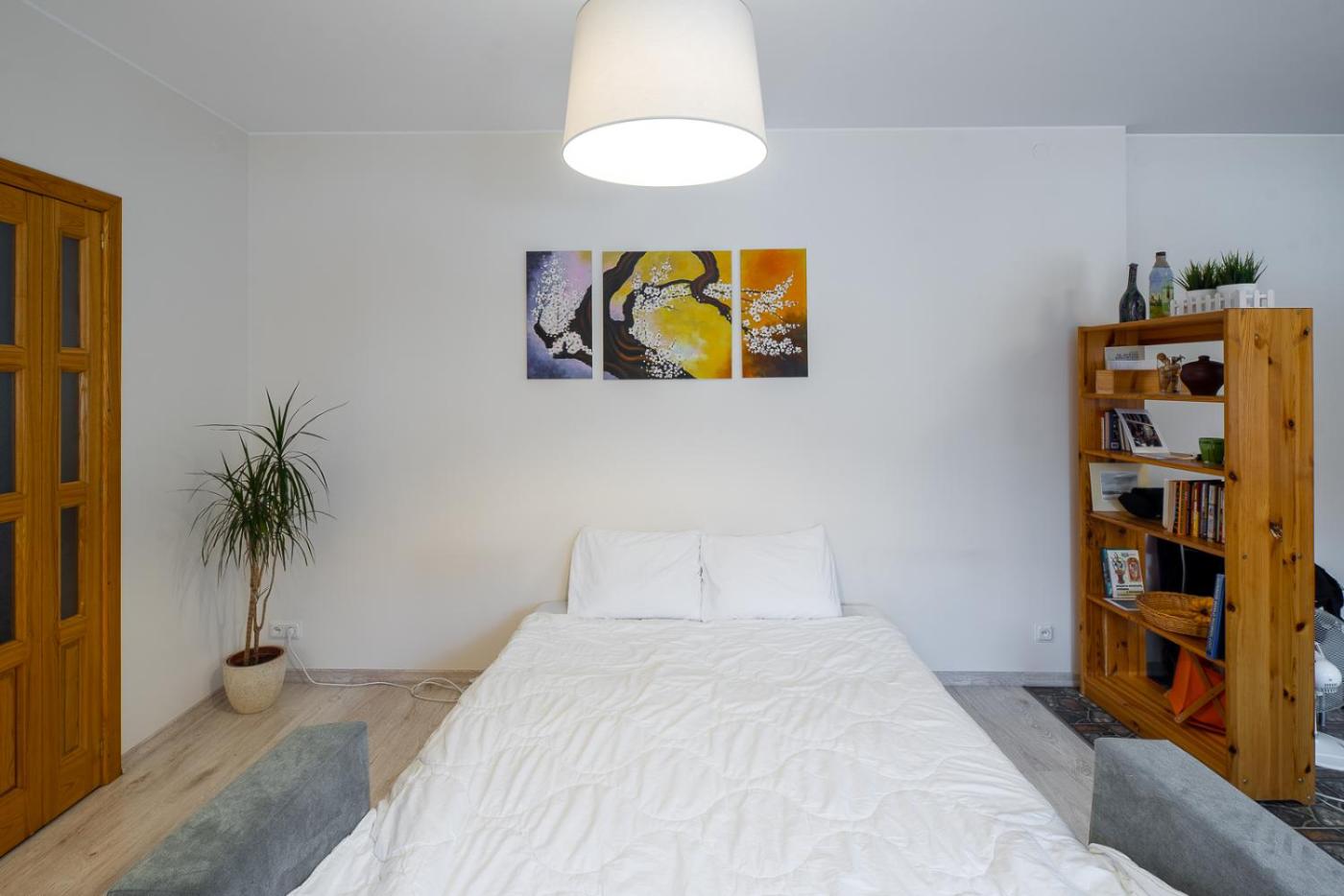 One-Bedroom Apartment. Boasting a private entrance, this apartment includes 1 living room, 1 separate bedroom and 1 bathroom with a bath and a shower. In the kitchen, guests will find a stovetop, a refrigerator, kitchenware and an oven. The apartment offers a washing machine, soundproof walls, a tea and coffee maker, a flat-screen TV with cable channels, as well as city views. The unit has 2 beds.