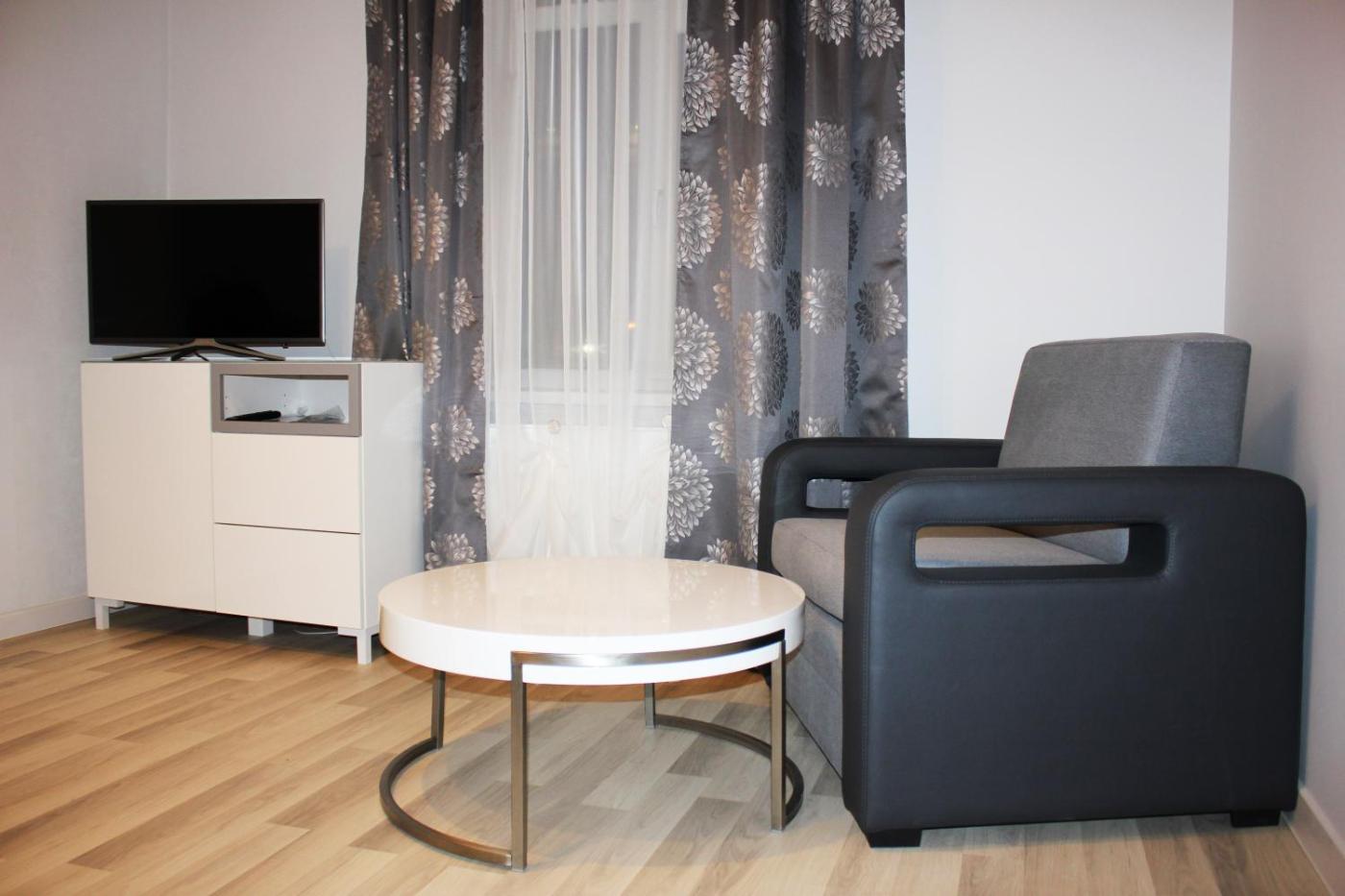 Standard Apartment. Boasting a private entrance, this apartment comes with a kitchen, 1 bedroom and 1 bathroom with a walk-in shower and a hairdryer. In the well-fitted kitchen, guests will find a stovetop, a refrigerator, kitchenware and a microwave. The apartment features a washing machine, soundproof walls, a tea and coffee maker, a flat-screen TV with satellite channels, as well as city views. The unit has 1 bed.