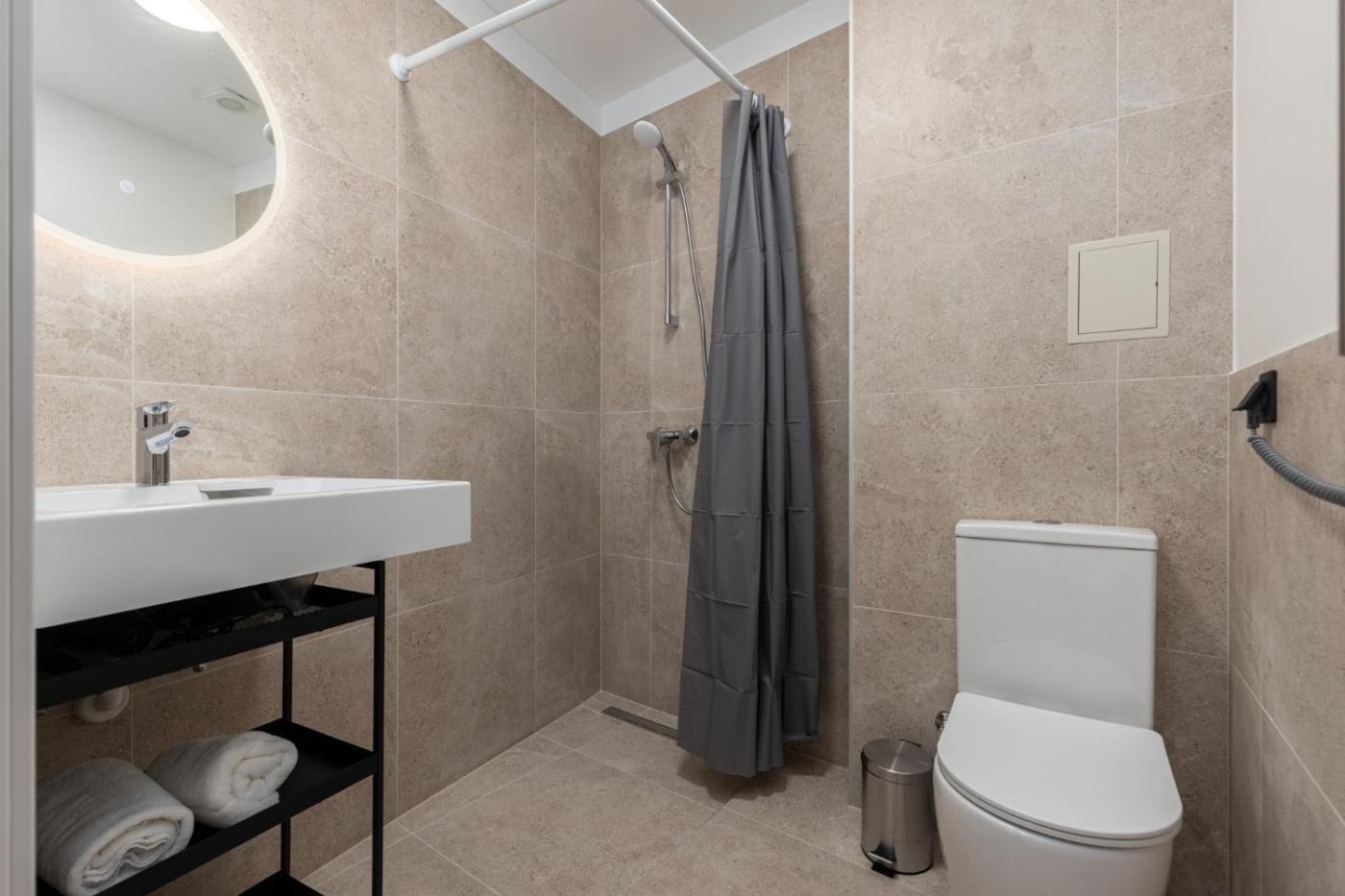 Studio Apartment. The apartment features 1 bedroom and 1 bathroom with a shower and free toiletries. The well-fitted kitchen has a stovetop, a refrigerator, a microwave and an electric kettle. The apartment provides a wardrobe, parquet floors, a tiled floor, heating and a flat-screen TV. The unit offers 1 bed.