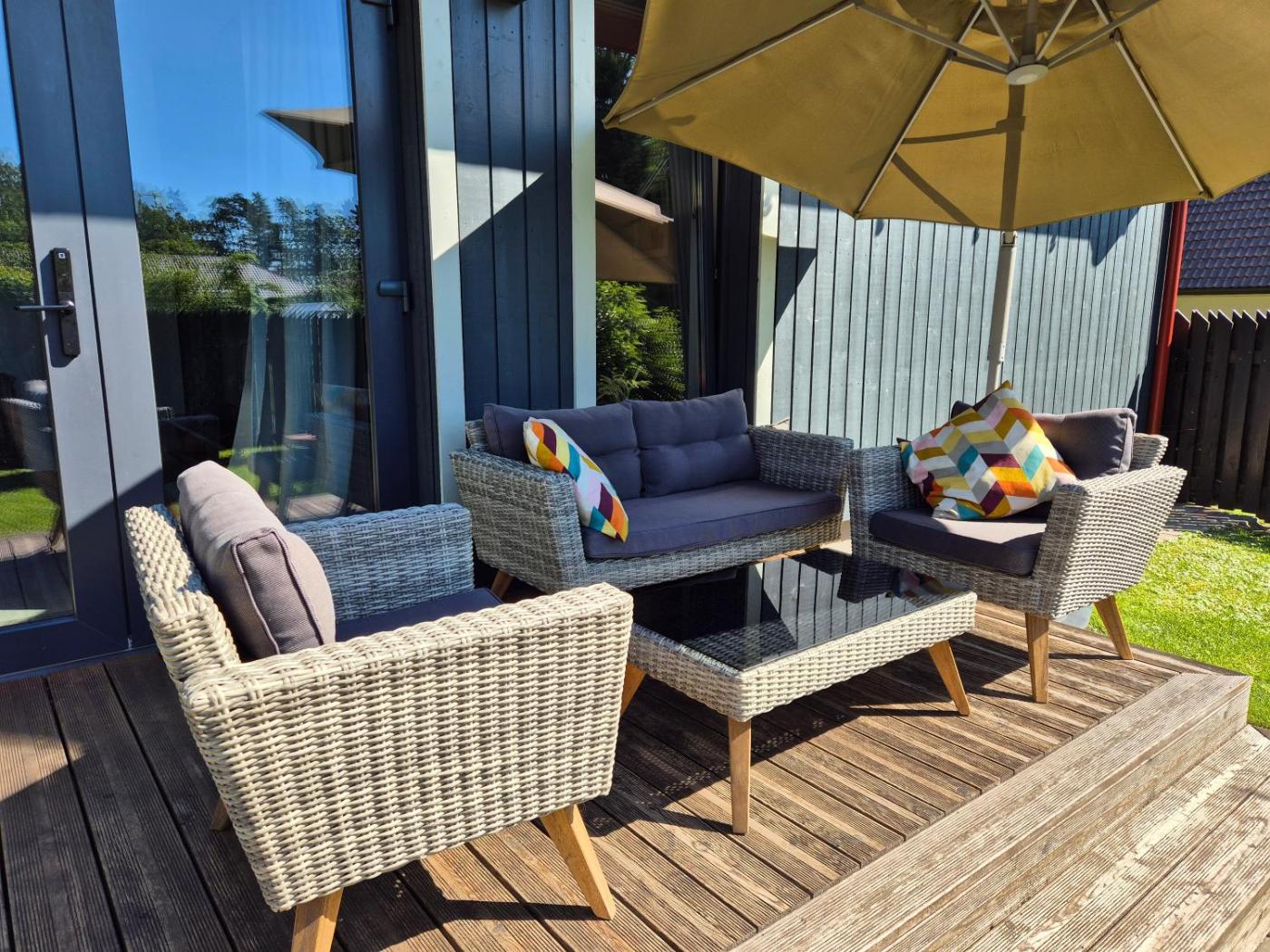 Two-Bedroom House. This holiday homes standout feature is the fireplace. Boasting a private entrance, this holiday home includes 1 living room, 2 separate bedrooms and 1 bathroom with a walk-in shower and a hairdryer. Guests will find a stovetop, a refrigerator, kitchenware and an oven in the well-fitted kitchen. The holiday home also features a barbecue. Featuring a terrace with garden views, this holiday home also offers a washing machine and a flat-screen TV with streaming services. The unit has 3 beds.