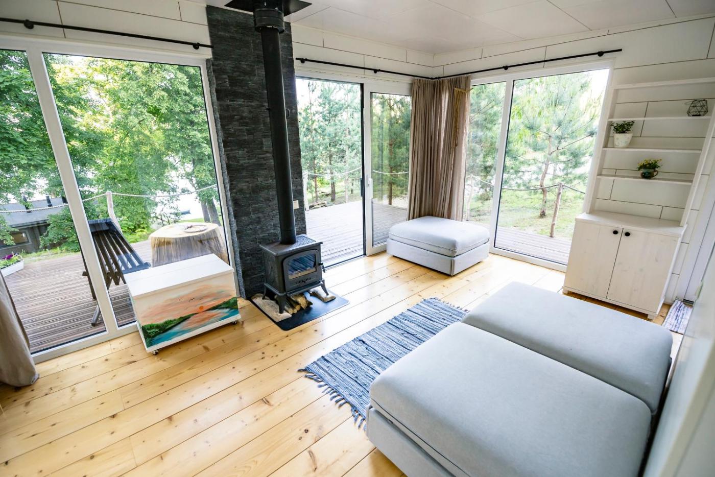 Two-Bedroom House. This holiday home features a sauna and a fireplace. Boasting a private entrance, this air-conditioned holiday home features a kitchenette, 2 bedrooms and 1 bathroom with a shower and a hairdryer. Guests will find a stovetop, a refrigerator, kitchenware and an electric kettle in the kitchenette. The holiday home also comes with a barbecue. The holiday home features a seating area, parquet floors, as well as a terrace and a patio. The unit has 4 beds.
