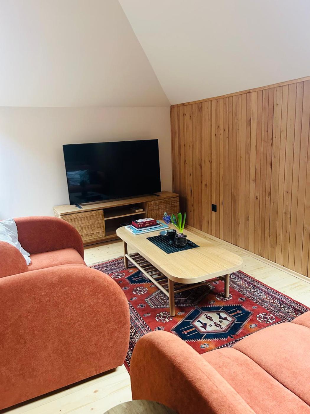 Holiday Home. The sauna is a top feature of this holiday home. This holiday home comes with 1 living room, 2 separate bedrooms and 2 bathrooms with a shower and free toiletries. Guests will find a stovetop, a refrigerator, kitchenware and a toaster in the fully equipped kitchen. The holiday home also includes a barbecue. The holiday home features a tea and coffee maker, a seating area, a dining area, a flat-screen TV with streaming services, as well as garden views. The unit has 9 beds.