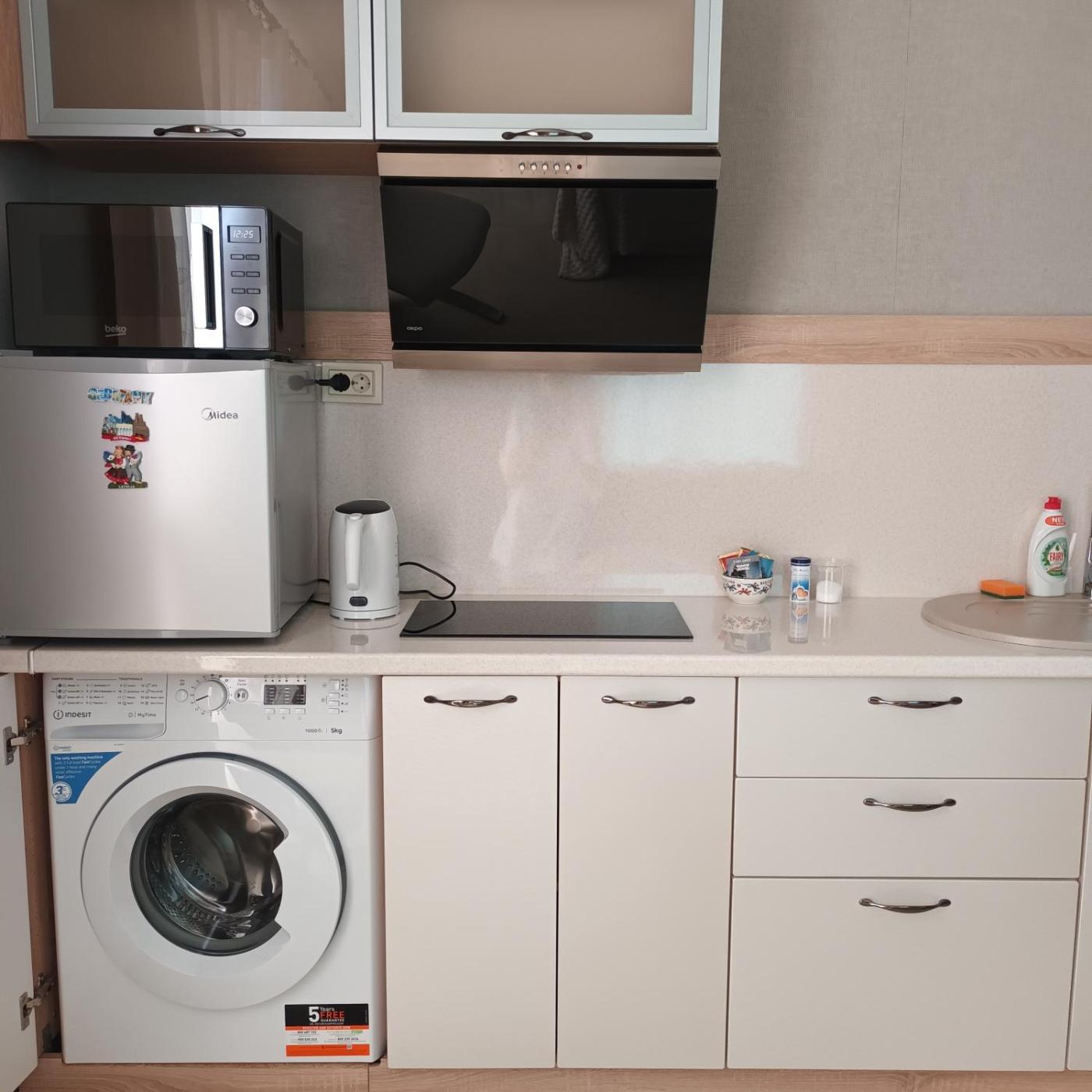 One-Bedroom Apartment. Boasting a private entrance, this air-conditioned apartment comes with a kitchenette, 1 bedroom and 1 bathroom with a walk-in shower and a hairdryer. The well-equipped kitchenette has a stovetop, a refrigerator, kitchenware and a microwave. Featuring a terrace with garden views, this apartment also features a washing machine and a flat-screen TV with satellite channels. The unit has 1 bed.